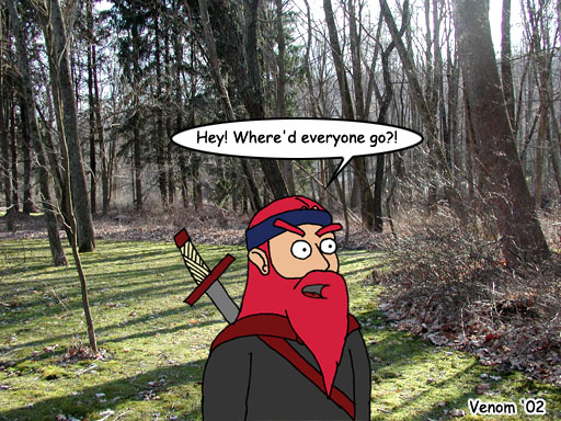 | Another incident that I see happen quite frequently. Especially to me, due to the fact that UO crashes at least once an hour... *mutter*. The perspective of this comic is similar to the last comic, as to how do characters react in game when one of their guildmates simply stops responding to anything at all? And what happens when you're disconnected anyways? I guess it depends on the area you're in at the time! |