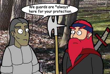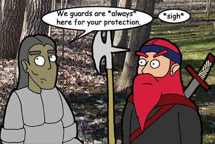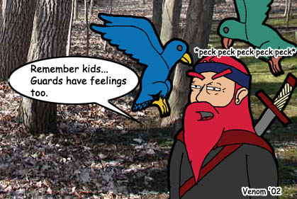 This public service announcement is just my tribute to the guards of UO... I mean, really! They'll help you out any way they can, provided you're in town limits. Be it a daemon, or a bird, they're always on the job, 24/7 (except when servers are down!). I know that I sometimes try experimenting with guards, seeing what they'll kill, and under what cirumstances... so it's more than reasonable to think that they get pretty ticked when they have to constantly respond to people (like me) being stupid. :P