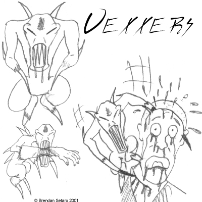 New! 10/26/01 - On top of the new episode, I've been working on some side things for Rogues, such as wildlife. I've come up with a creature that will soon terrorize the kingdom of Jiltem... Vexxers (warning, gory drawing).